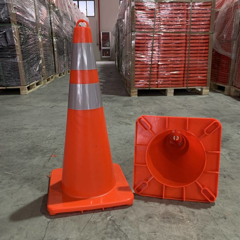 पीवीसी यातायात शंकु प्रतिबिंबित टेप के साथ सुरक्षा शंकु 70 सेमी 28 इंच नारंगी चेतावनी शंकु
